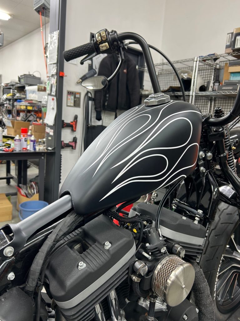 XL883Nにスプリンガーフォークを取付て、今回は燃料タンクの交換です!