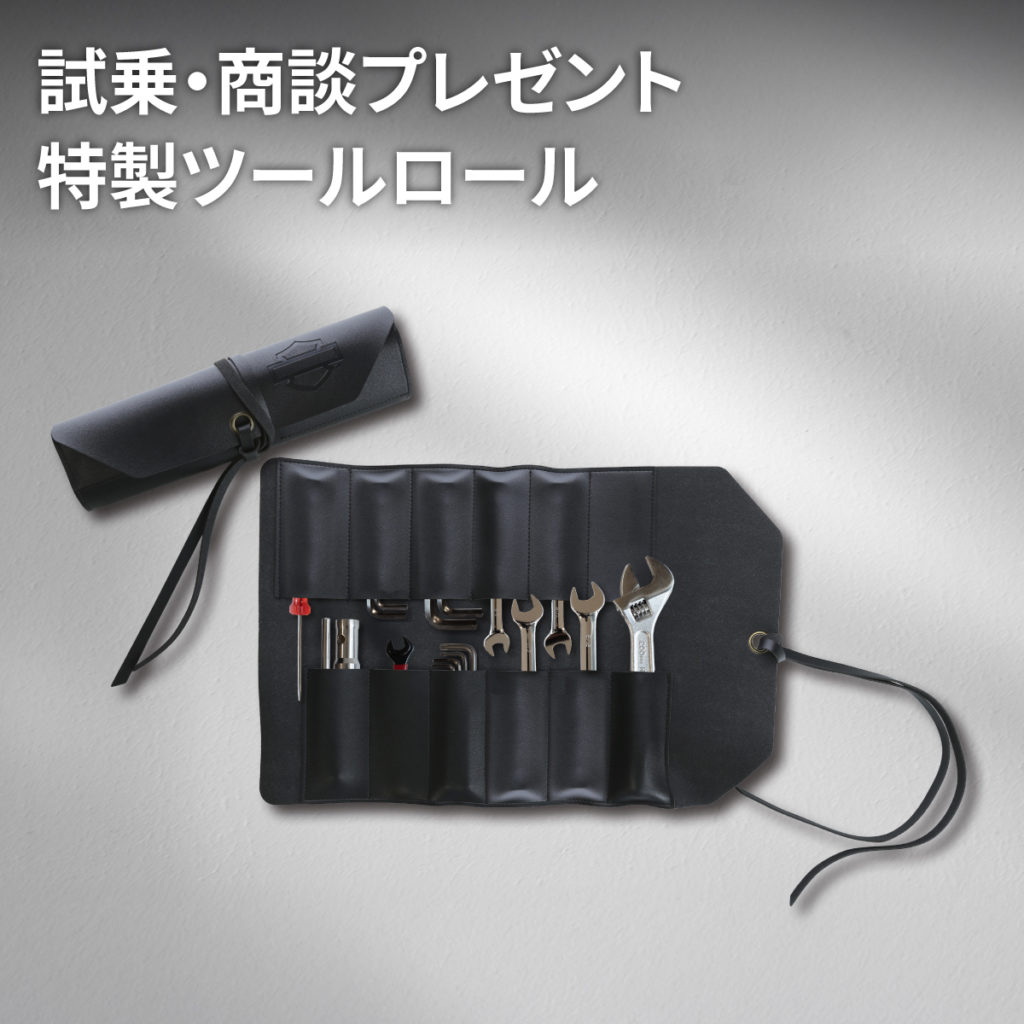 【ご試乗やご商談でハーレーグッズ進呈】フェア期間中、試乗またはご商談でH-Dマルチツールケース、来店記念に車両カタログとステッカーをプレゼント